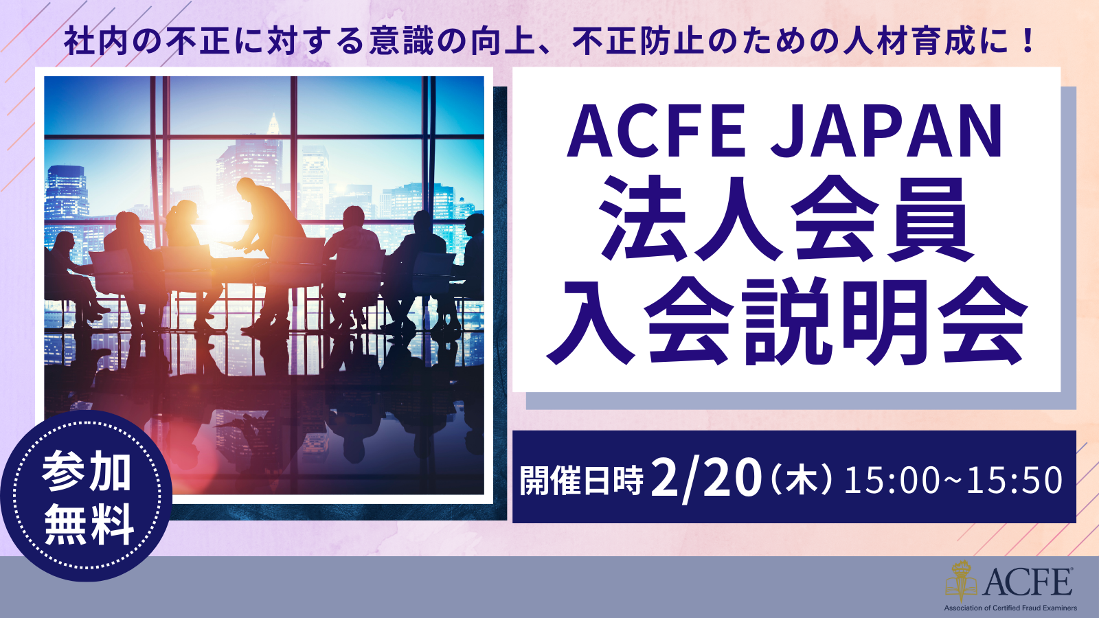 セミナータイトル2/20 ACFE JAPAN法人会員入会説明会